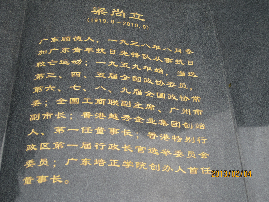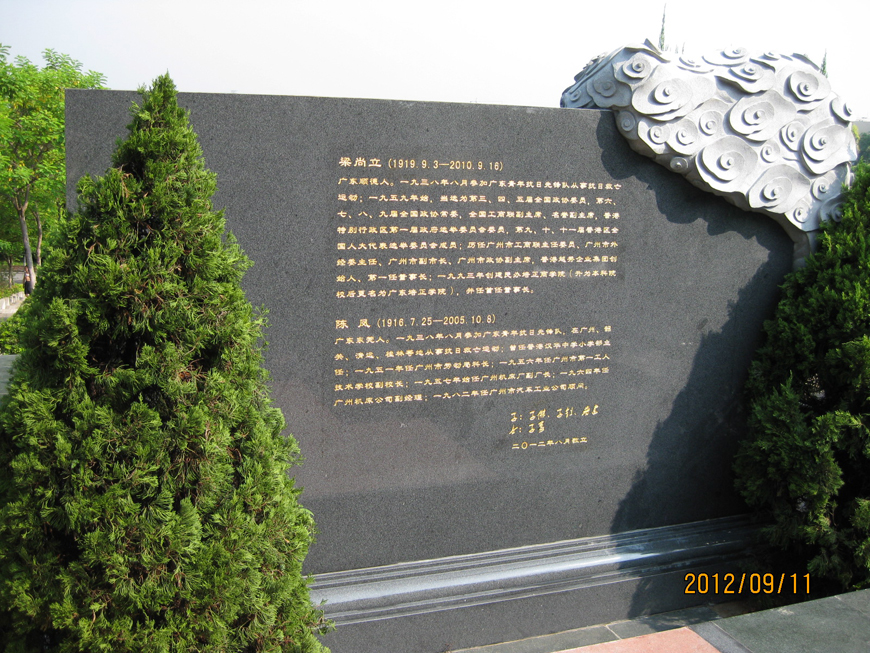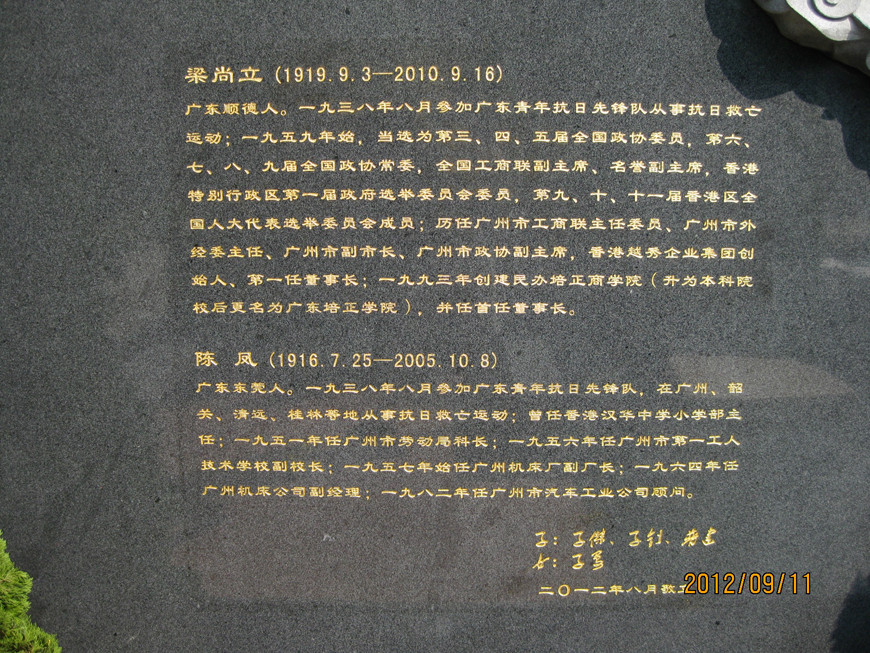 本人从1996年起服务执教于广东培正学院,一直与老董事长立叔朝夕相对共事多年,立叔虽巳离我们远去,惟对老董事长创办学院殚精竭虑、鞠躬尽瘁事迹至今仍历历在目,不能遗忘。日前抱思念之情,赴广州革命公墓(银河园)统战墓地第十四排七座,老董事长梁尚立夫妇墓园致祭并拍摄留念。兹将当日拍摄之老董事长墓园照片载于校园网上,供师生瞻仰,公众亦可按上述墓园地址前往致祭悼念,前人种树后人乘凉,不忘立叔功德。